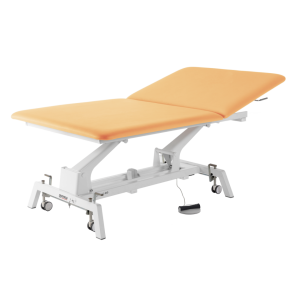 The gymna.GO Bobath (2-section, 120 cm wide) is an electric height-adjustable therapy table with a wide 120 cm surface, designed for neurological rehabilitation and large-patient support – enabling safe transfers and patient lift compatibility.
