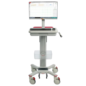 CARDIOVIT CS-104 combines all essential ECG features and desired possibilities in an integrated system. It includes a PC, a monitor, a trolley, and a wireless (MS-12 BT) or wired (MS-12 USB) acquisition module. Optionally, CARDIOVIT FT-1 can be used for ECG acquisition. Everything is pre-installed and tested by SCHILLER, ready to be used in clinical practice. CARDIOVIT CS-104 is also available as PC software for resting ECG, with optional stress test and spirometry add-ons. Designed for clinics and hospitals, the CARDIOVIT CS-104 streamlines ECG diagnostics and stress testing. The system supports resting 12-lead ECG with automatic interpretation (ETM + ETM Sport), resting-rhythm recordings up to 60 minutes, exercise/stress ECG (with arrhythmia detection), optional vector ECG, and add-on modules like spirometry, blood pressure, and SpOâ‚‚ during stress testing. A height-adjustable trolley and full connectivity (EMR/HIS/PACS) provide workflow flexibility.