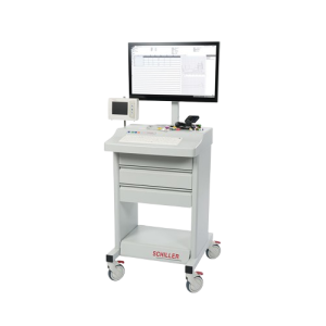The CARDIOVIT CS-300 is a premium stress-test ECG system built for high-throughput hospital usage. It offers wireless 12-lead ECG acquisition, a 27″ 4K touchscreen, advanced analysis modules, exercise and pharmacological stress testing, and extensive connectivity with enhanced cybersecurity.