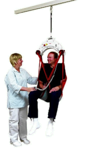 The NOMADE ceiling-mounted patient hoist is a rail-based lifting solution offering smooth transfers and verticalisation with a high load capacity (approx. 230 kg). It features an integrated handle, remote control operation and flexible rail system for hospitals, clinics, or home environments.