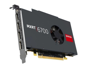 Ultimate solution for mainstream diagnostic imagingThe Barco MXRT-6700 is a high-end medical display controller built for demanding diagnostic imaging workflows. It features 8 GB of GDDR5 memory, a 256-bit interface, and memory bandwidth of 160 GB/s, ensuring fluid rendering of large medical image datasets. It supports four DisplayPort 1.4 outputs, handles 10-bit grayscale plus full-color content, and maintains a compact single-wide form. Its robust driver support and imaging optimizations make it ideal for PACS workstations, radiology suites, and clinical reading environments. The high-performing Barco MXRT-6700 graphics card is a versatile solution with the power and features necessary to meet most diagnostic imaging needs. With 8GB of graphics memory driving four DisplayPort v1.4 outputs, it is the ideal solution for organizations looking to standardize on one controller across their entire fleet of reading stations. Accelerate your workflow application responsiveness with 1792 stream processors and enable more efficient data transfers between the GPU and CPU with PCIe 3.0 support. Key features include 4 ports to cover expanded display arrays, increased memory for larger image data loading, EDID emulation for multi-workstation configurations, and Thunderbolt™ 3 compatibility for eGFX applications.Features