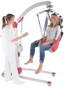 Poweo 215 Patient Lifter is adapted for all kinds of transfers in hospitals and nursing homes. It is equipped with a 4-point suspension with integrated scale, an option, or with a tilting electric suspension, which allows an active positioning of the patient in a sitting position. It has an exclusive function that stops and starts raising and lowering progressively so as to avoid jolts. Poweo 215 has an electrical opening of the base and a removable high-capacity battery. This low base model allows for fitting under beds, wheelchairs, or bathtubs. Its integrated software allows for the configuration of the various parameters in use, manages all features, and provides effective help in maintenance.