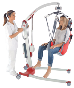 Poweo Nursing Electric Floor Hoist is dedicated to home care and nursing homes. It is equipped with a 4-point suspension with an integrated weighing system, an option. Poweo lifters are used with a large range of slings adapted to all kinds of morphologies and pathologies. Maximum loading capacity: 180 Kg.