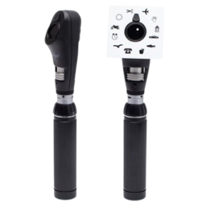The ri-scope® retinoscope, also referred to as the skiascope, measures the refractive power of the eye. Refractive flaws, such as near- and far-sightedness, as well as astigmatism, can be detected and diagnosed. Riester offers the split-light retinoscope (glow is a stitch) model.