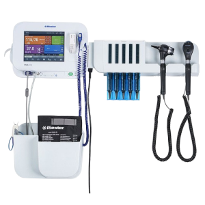 RVS-200 is a versatile, integrated modular wall diagnostic station that, like the RVS-100, measures pulse rate (PR), oxygen saturation (SpO2), non-invasive blood pressure (NIBP), and temperature (oral/axillary probe) with the additional option to add ophthalmoscopes, otoscopes, and dermatoscopes. The flexible, modular design offers many configurations and settings to suit the needs of hospitals and clinics, as well as office-based and long-term care settings.